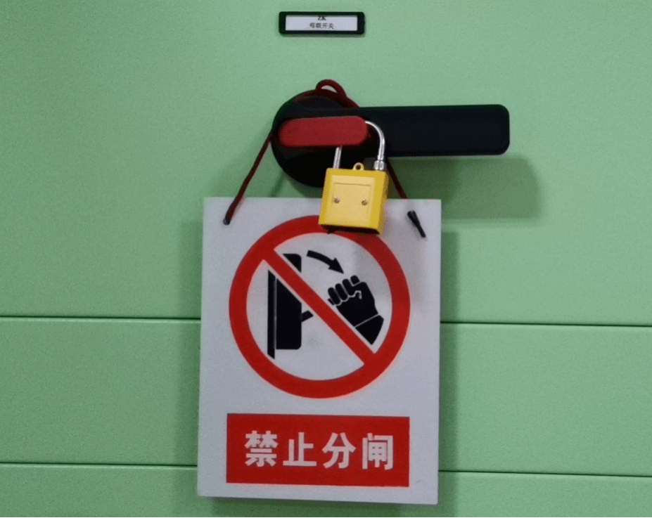 2. 兩段母線并列后,在合上的母聯(lián)開關把手上掛“禁止分閘!”標示牌,并在把手操作桿上加掛機械鎖。