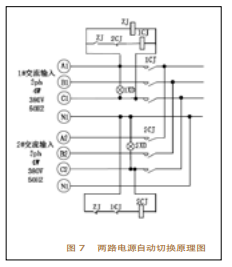 在直流屏中,除了整流器和蓄電池外,還有一個重要的部分,即溝通輸入電源部分。溝通輸入電源是直流屏能否正常供電的前提條件,而一般直流屏所需要的溝通輸入電源,都是由兩路電源組成,一路主用,另一路備用。在主用電源停電時,備用電源主動切換,在主用康復(fù)供電時,主動切換回主用。下面介紹一下兩路電源主動切換的原理,主動切換原理圖如圖7所示。三相溝通輸入Al、B1、Cl為1#輸入電源,三相溝通輸入A2、B2、C2為2#輸入電源。正常情況下,即1#、2#溝通輸入電源供電正常時,在1#溝通輸入電源操控回路中,中心繼電器ZJ線圈帶電,使其常開觸點(diǎn)ZJ閉合,一起2#溝通輸入電源回路中的Z常閉觸點(diǎn)斷開,2#溝通輸入電源操控回路中的2#接觸器2CJ線圈不帶電,那么,1#溝通輸入電源操控回路中的2CJ常閉觸點(diǎn)是閉合的。因此,1#溝通輸人電源操控回路中ZJ-2CJ-ICJ回路通電,1#接觸器1CJ的主觸點(diǎn)閉合,l#溝通輸人電源主回路接通,1#溝通輸入電源被接入整流器回路中,供給整流器溝通電源。當(dāng)1#溝通輸入電源忽然中止時,中心繼電器Z線圈失電,其常開觸點(diǎn)Z翻開,使ZJ-2CJ-ICJ回路斷電,接觸器ICJ主觸點(diǎn)斷開,主回路斷開。而此刻在2溝通輸入電源操控回路中,因?yàn)橹行睦^電器Z線圈的失電,使Z常閉觸點(diǎn)閉合,加之1#接觸器lCJ線圈的失電,使ICJ的常閉觸點(diǎn)也閉合。因此,2溝通輸入電源操控回路中ZJ-ICJ-2CJ回路通電,2m接觸器2CJ線圈帶電,使2#接觸器2CJ主觸點(diǎn)閉合,2#溝通輸入電源主回路接通,2m溝通輸入電源被接入整流器回路中,供給整流器溝通電源。當(dāng)l#溝通輸入電源康復(fù)供電時,2#溝通輸人電源回路中的常閉觸點(diǎn)ZJ翻開,2”接觸器線圈2CJ失電,2接觸器主觸點(diǎn)斷開,切斷了2#溝通輸入電源供電,1#溝通輸入電源又被重新切換回整流器供電回路中去。
